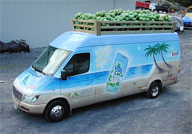 Sample Truck- Roof Rack and 1001 plastic coconuts designed a built Weiss/Harrison /Dodge Sprinter